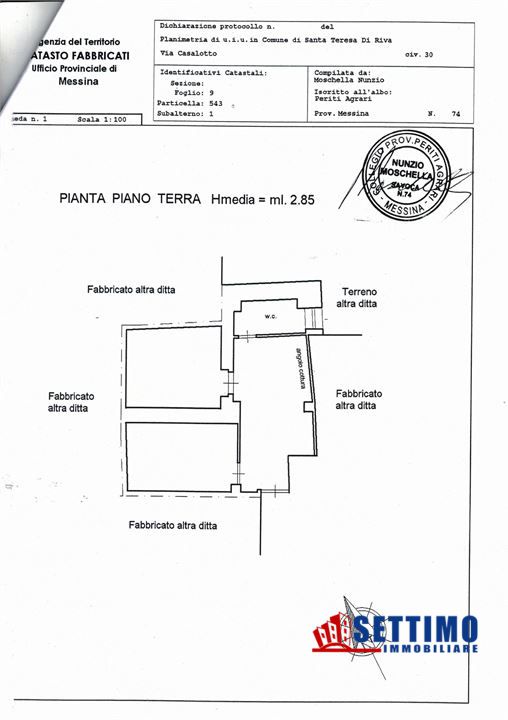 Casa singola sita nel comune di Santa Teresa di Riva, in via PANORAMICA Maria Teresa d'Austria con ingresso dalla via Casalotto N. 8, l'immobile si divide su due piani Terra e Primo, con annesso cortile, ha una superficie complessiva di mq 110 circa, posizione panoramica e facilmente raggiungibile dal centro urbano